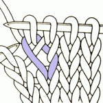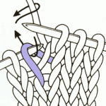 Ввести правую спицу в петлю предыдущего ряда столбика петель, которые находятся на левой спице, провязать лицевую петлю, затем ввести правую спицу в петлю на левой спице и также провязать ее лицевой. Если необходимо прибавить 1 лицевую петлю справа от изнаночной, то поступаем таки же образом.