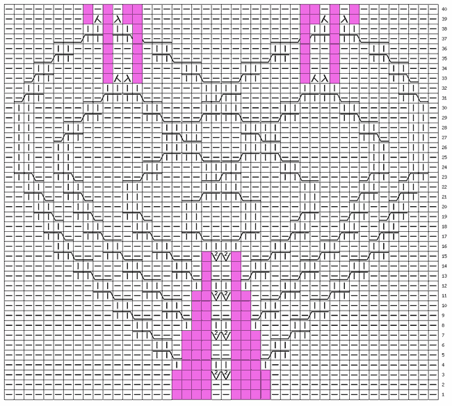 Ширина мотива 36 петель. В высоту вяжем 40 рядов.