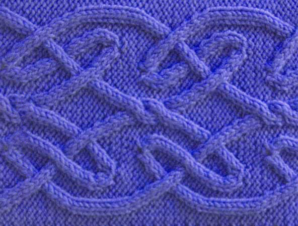 3 петли перекрестить направо (1 петлю снять на вспом. спицу и оставить за работой, 2-е петли провязать лицевыми, затем петлю со вспом. спицы провязать изнаночной)